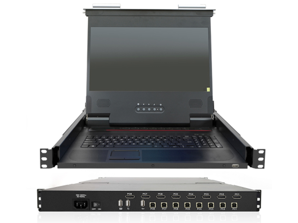 工業級機架式KVM切換器機房統一控制中心,可控制8臺主機設備